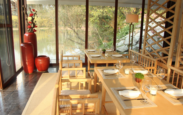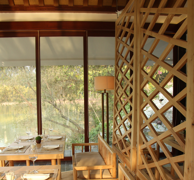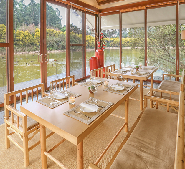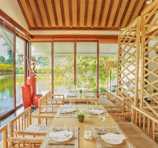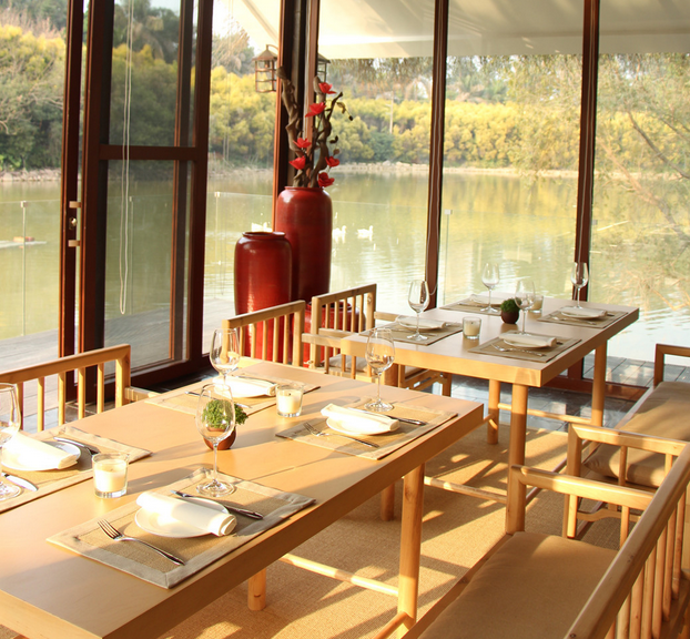 “采菊东篱下,悠然见南山”恰到好处地描述了东方休闲度假的最高境界,去除尘世间之浮躁与杂念,陶冶情操,做一个与世无争之隐士,坐拥天然之美, 结合历史文化的传承, 处处弥漫浓厚的自然乡村风情。它的特别之处在于精美纯朴的家具摆设搭配现代化的餐饮设施,悬浮于平静的湖面之上,只需一步就可领略大自然的清新气息。 晨昏雾绕, 会所将新与旧、传统与现化的艺术交替融合, 绽放出令人心醉的火花。