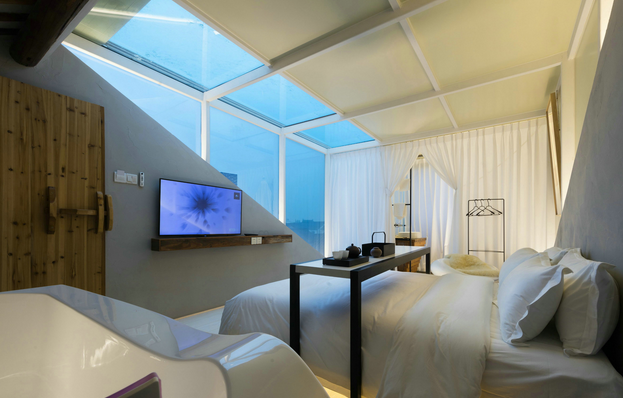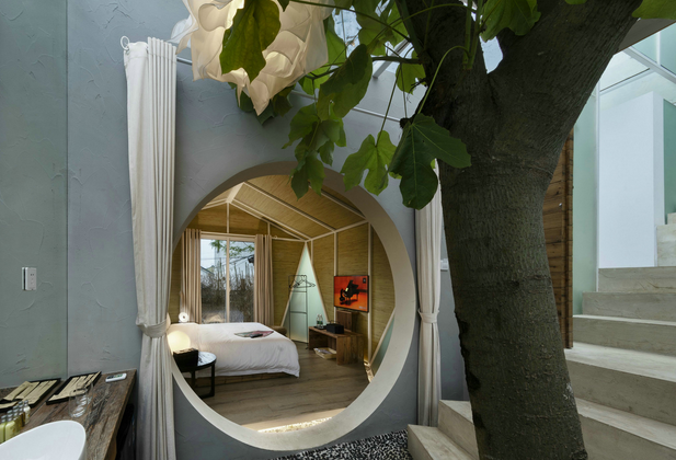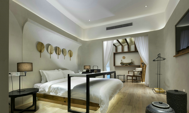 “浮点·禅隐客栈”是由一栋老宅改建而成,改造前的“浮点·禅隐客栈”是锦溪古镇南大街上2幢毫不起眼的破房子,老屋门前荒草重生。曾经的白墙也在雨水的冲刷中变得斑驳,破败感中带有年代的气息。在拆建的过程中,设计师在保留老房子灵魂和神韵的基础上进行内部的设计与改造,希望走进来的每个人都可以感受到人文与设计相结合的意境,以及当地浓浓的风情。