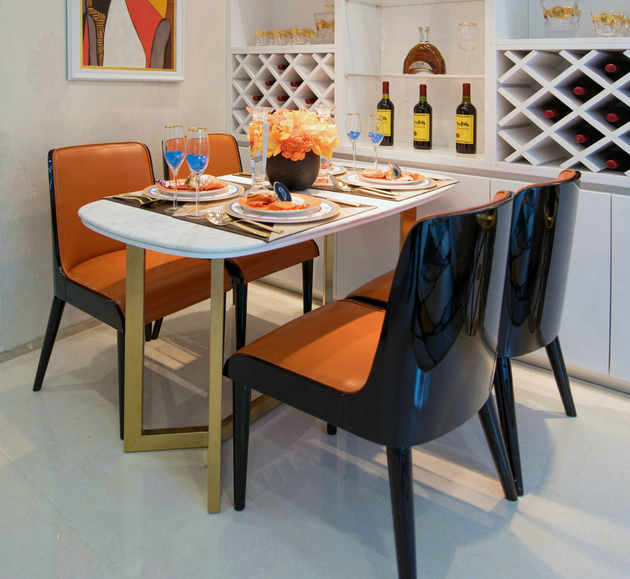 本案中结合现代时尚风格融入了米兰设计周里的时尚感与设计感元素,通过现代极简的造型、艳丽夺目的色彩以及新颖材料的运用,力求打造出一个当下最为时尚的国际化宜居空间,同时给客户留下一种尊贵,玩味,而又富有张力的样板房体验感受。